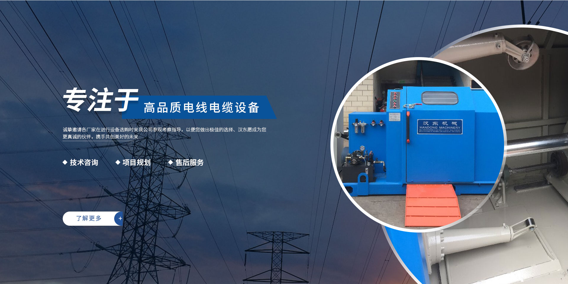 常州漢東機(jī)械始創(chuàng)于2006年,是集電線電纜機(jī)械設(shè)計(jì)、開發(fā)、制造、安裝、調(diào)試為一體化的高科技企業(yè)。本公司自開業(yè)以來(lái),積極引進(jìn)日本,歐美等國(guó)外電線電纜設(shè)備之先進(jìn)技術(shù),先后成功推出了達(dá)到行業(yè)先進(jìn)水平的電線電纜設(shè)備,主要產(chǎn)品有擠出、繞包、束線、成纜等電線電纜固定設(shè)備。在提供系統(tǒng)設(shè)備的同時(shí),還向客戶提供售前技術(shù)咨詢、項(xiàng)目規(guī)劃、以及售后服務(wù)。我公司本著“以人為本、科技先導(dǎo)、用戶為上”的宗旨,為客戶提供牢靠的產(chǎn)品與省心的服務(wù)。漢東愿成為您更真誠(chéng)的伙伴,攜手共創(chuàng)美好的未來(lái)! 了解更多+